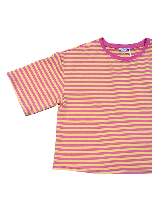 The Edit - Pink & Yellow Stripe Short Sleeve Tee