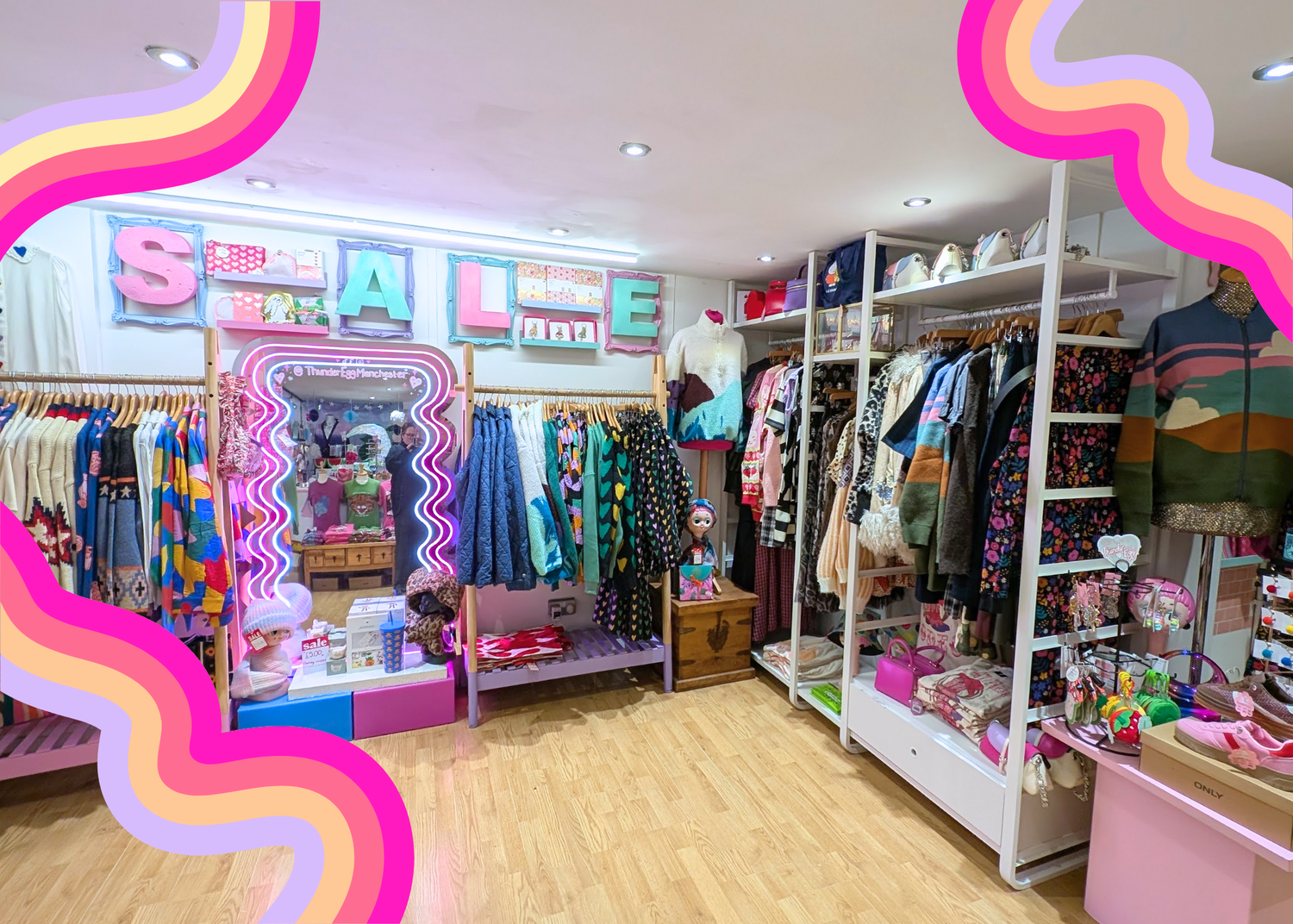 We have two colourful boutiques in Manchester city centre (UK). Visit us to browse our beautiful products IRL, put together cute outfits and try them on!