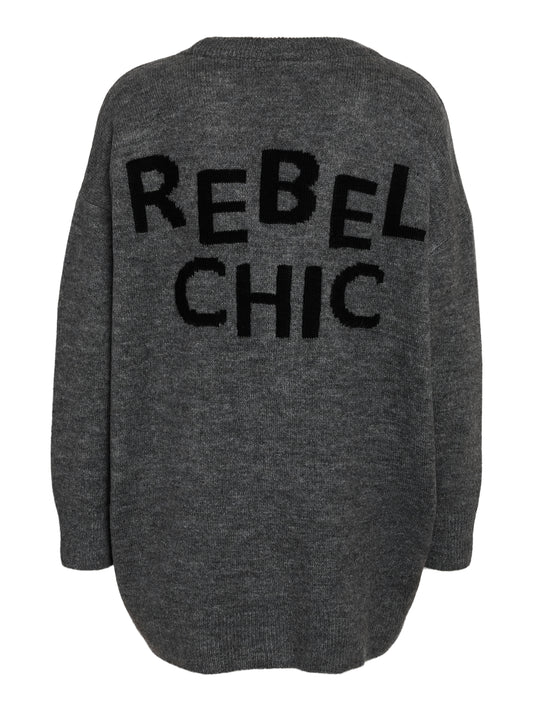 Noisy May - Charcoal Grey ‘Rebel Chic’ Jacquard Cardigan