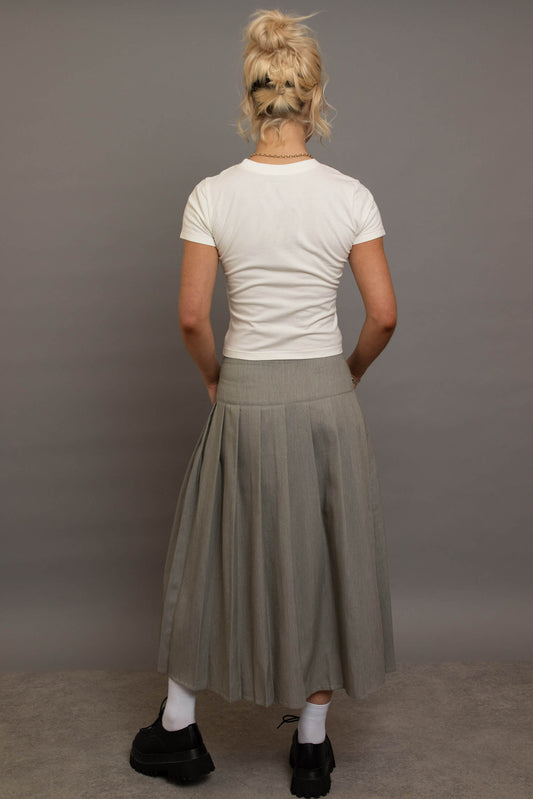 Daisy Street - Grey Midi Skirt with Mesh Slit