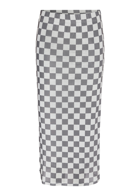 Noisy May - Grey Checkerboard Mesh Midi Skirt