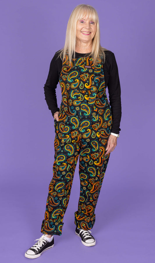 Run & Fly - Black Paisley Stretch Twill Dungarees