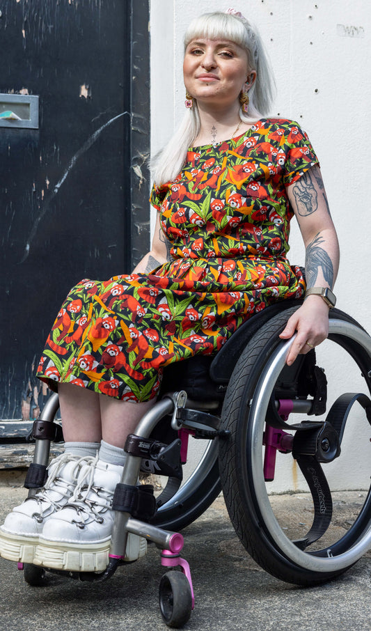 Run & Fly - Red Panda Stretch Belted Tea Dress with Pockets