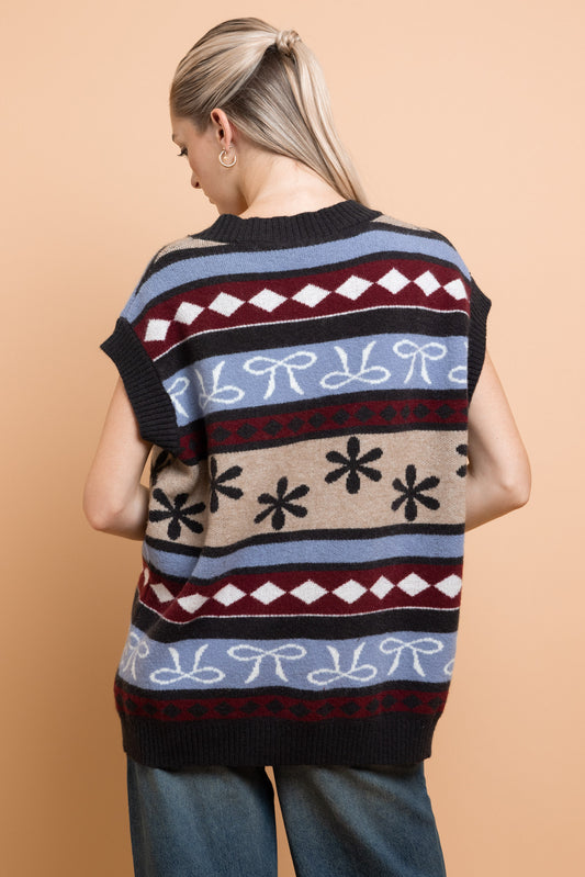 Daisy Street - Vintage Style Intarsia Pattern Knit Vest