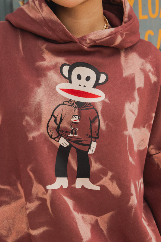 Daisy Street x Paul Frank - Spray Effect Burgundy Hoodie with Julius Printed Graphic