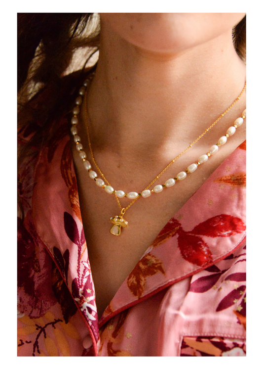 My Doris - Silver Pearl and Moonstone Mushroom Necklace