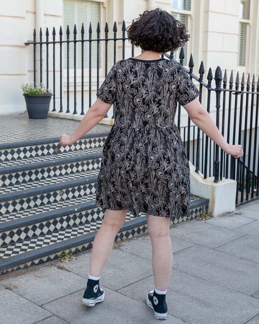 Rebel Romance - Black Floral Cobweb Stretch Smock Dress