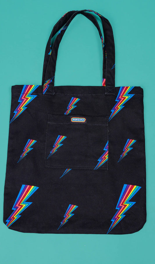 Run & Fly - Black Rainbow Lightning Tote Bag