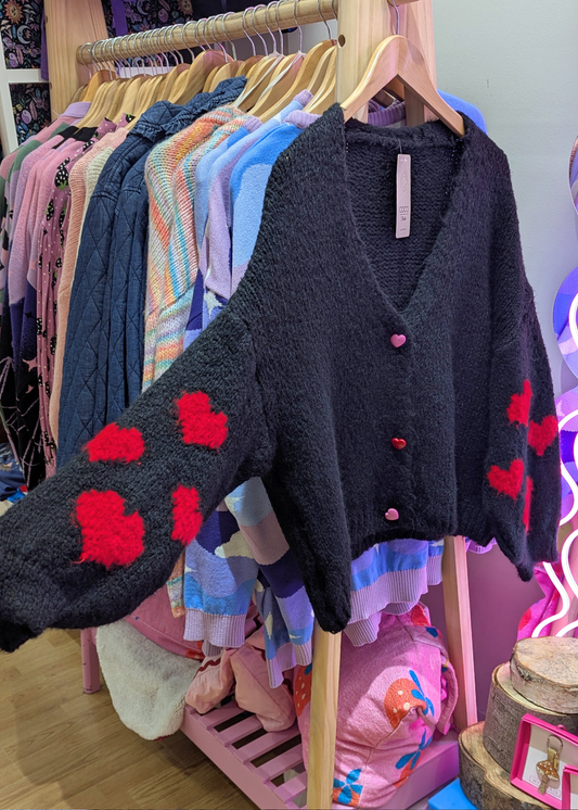 The Edit - Black and Red Heart Cardigan with Heart Buttons