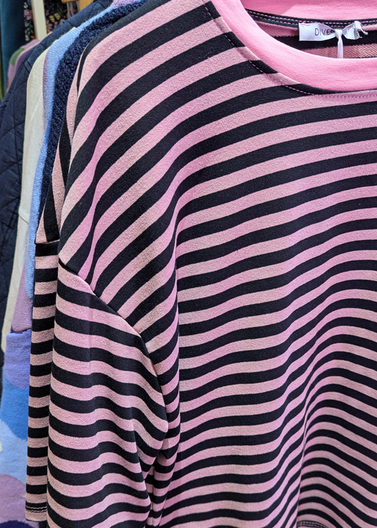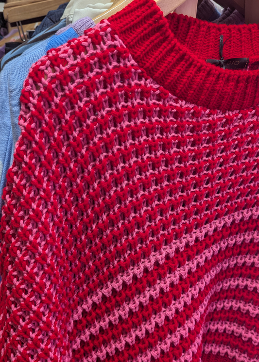 The Edit - Oversized Pink & Red Knitted Stripe Jumper with Exposed Seams