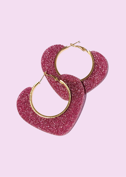 The Edit - Pink Glitter Heart Large Hoop Earrings