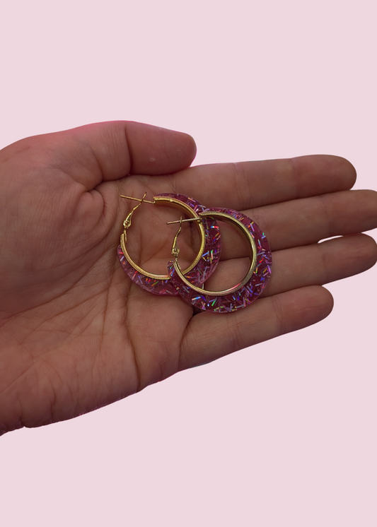 The Edit - Pink Iridescent Glitter Small Hoop Earrings