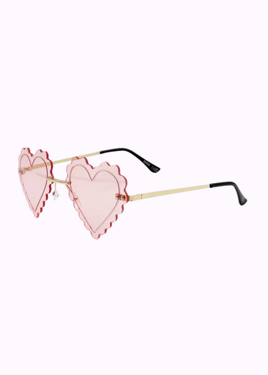 The Edit -Pastel Pink Scallop Edge Heart Sunglasses