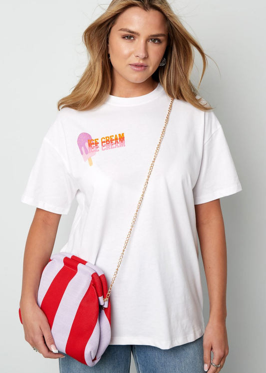 The Edit - Striped Clutch Bag in Pink and Orange