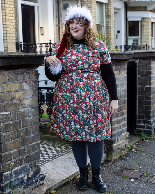 Run & Fly - Christmas Cuties Stretch Belted Tea Dress with Pockets