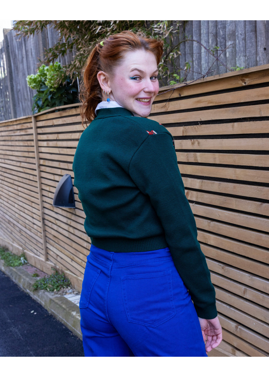 Run & Fly - Forest Green Fox Head Cropped Cardigan
