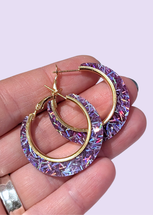 The Edit - Purple Iridescent Glitter Small Hoop Earrings