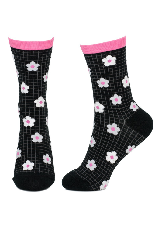 Joe Cool - Black and Pink Flower Grid Socks