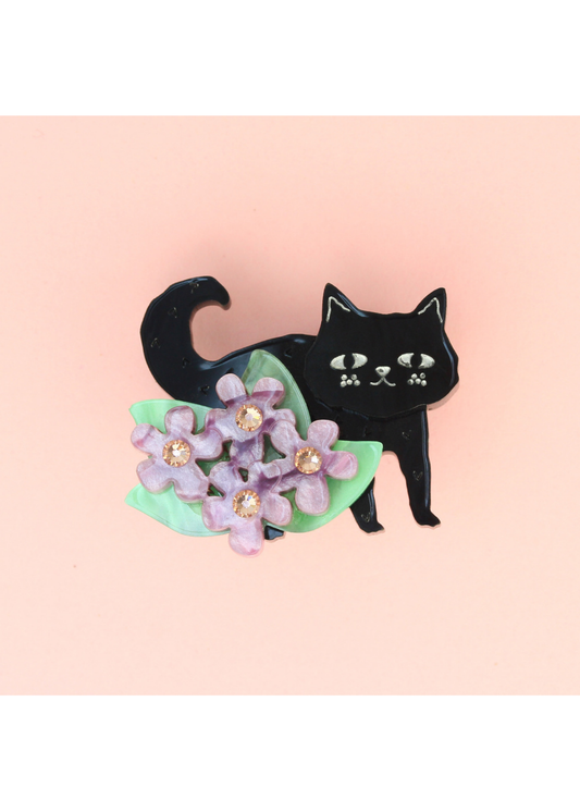 Little Moose - Cream Doodle Cat & Flower Necklace