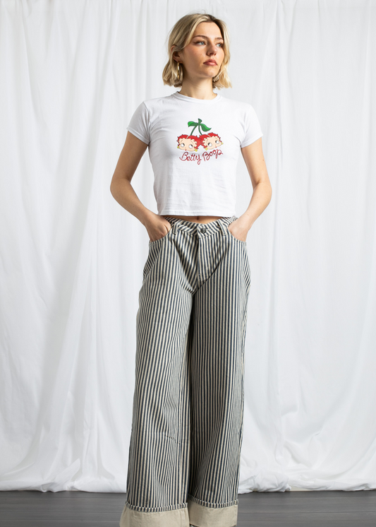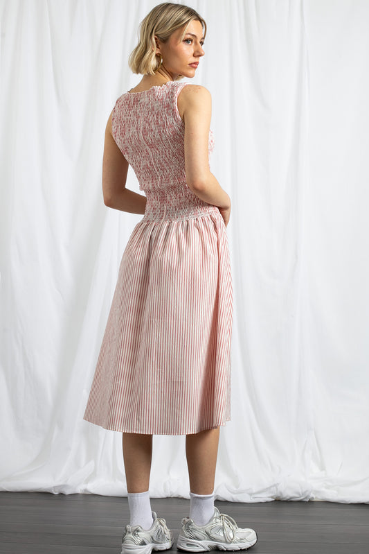 Daisy Street - Drop Waist Shirred Midaxi Dress in Red Stripe