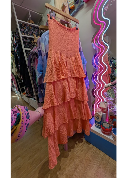 JJXX - Persimmon Gingham Seersucker Maxi Skirt