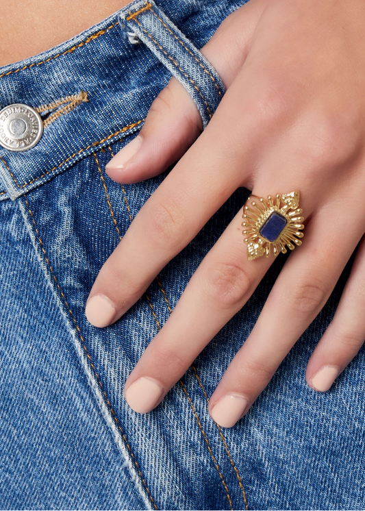 The Edit - Gold Nodule Ring with Navy Blue Stone