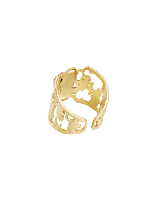 The Edit - Oval Fan Ring with Pink Stone