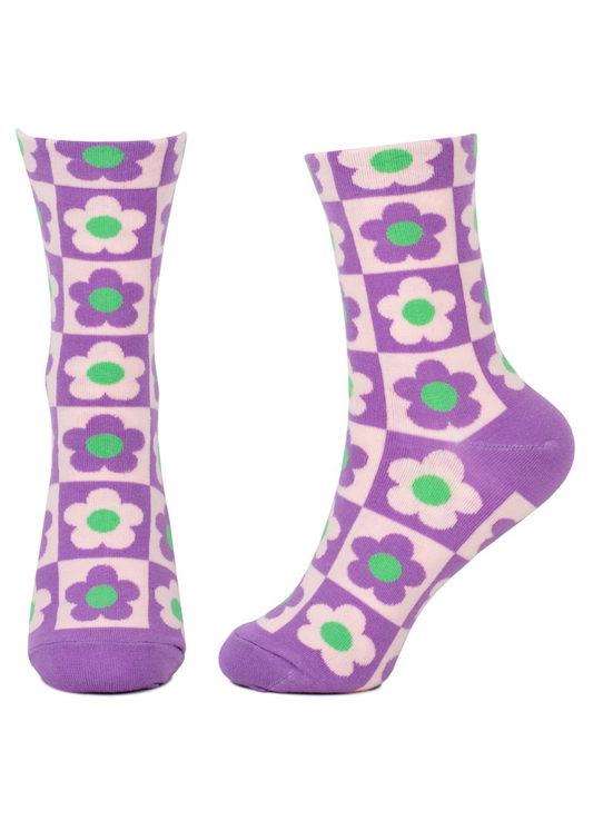 Joe Cool - Lilac Checkerboard Flower Socks