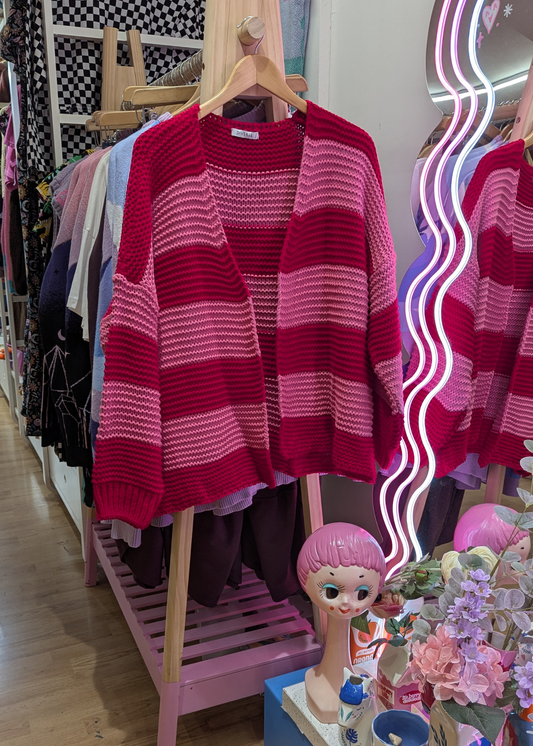 The Edit - Pink & Lilac Striped Knit Cardigan