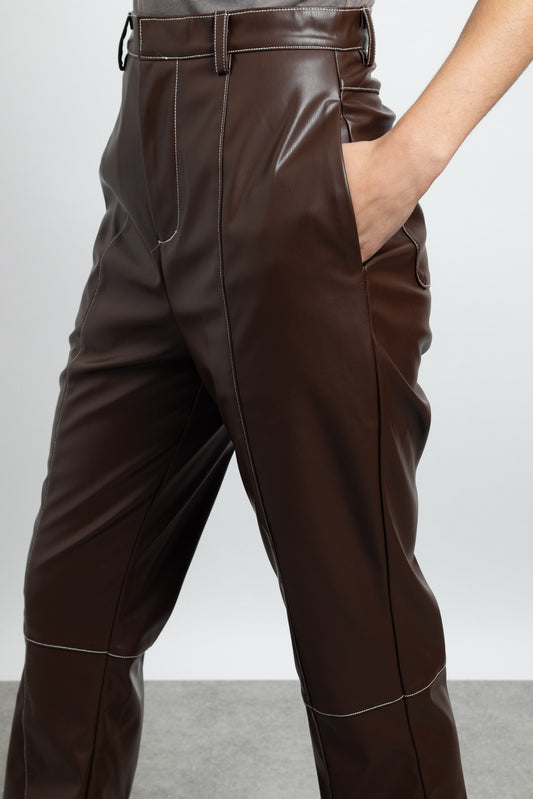 Daisy Street - Brown PU Trousers with Contrast Stitching