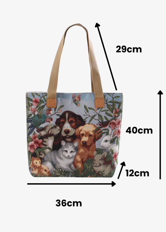 The Edit - Vintage-style Fluffy Friends Tapestry Tote Bag