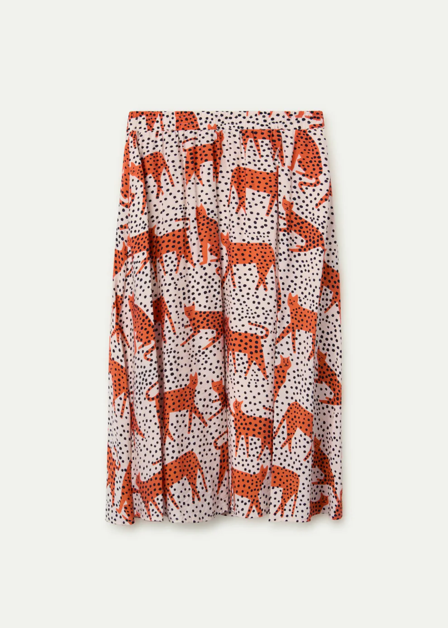 Cream and Black Spot Leopard Midi Skirt by Compañia Fantastica
