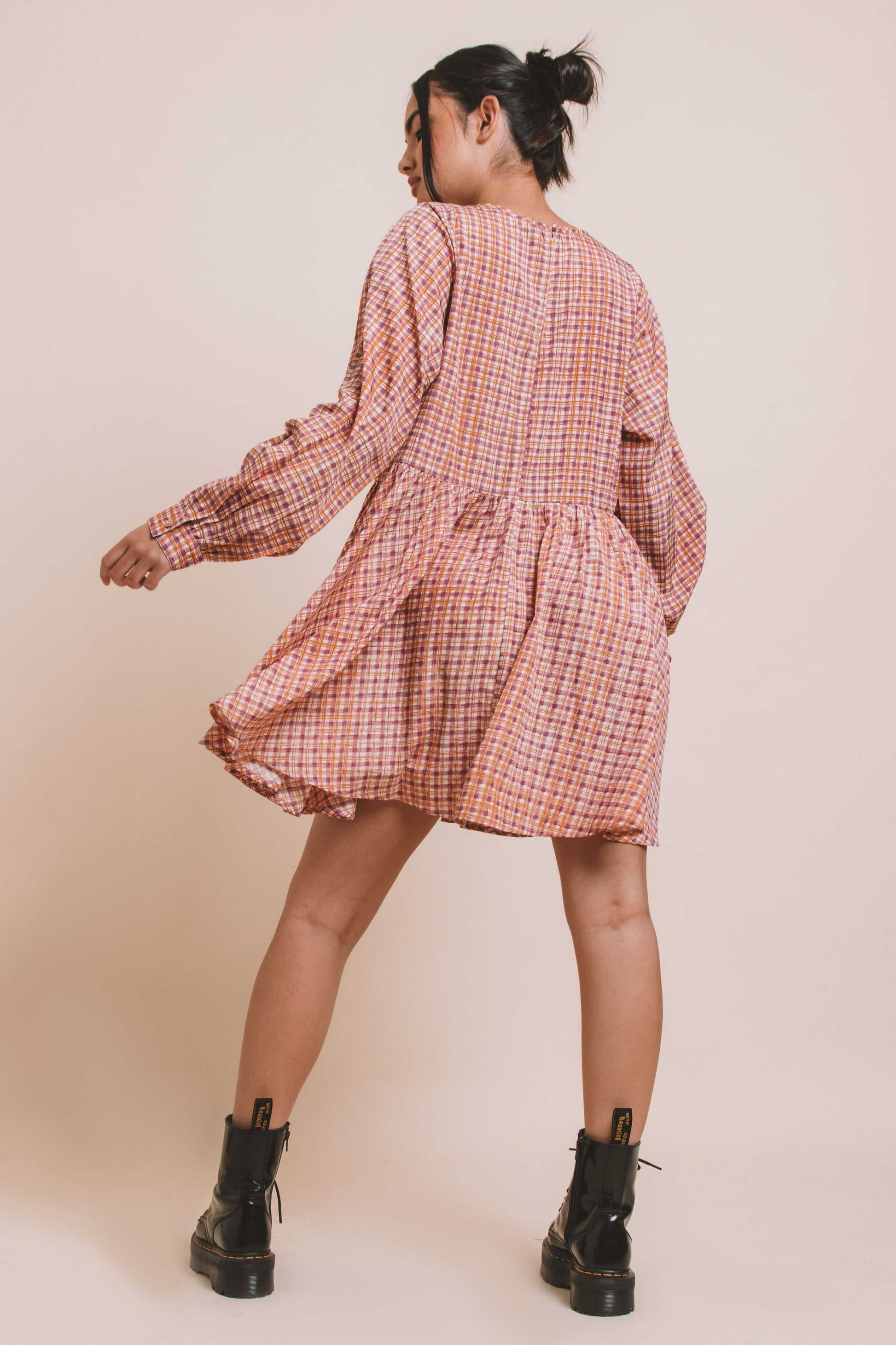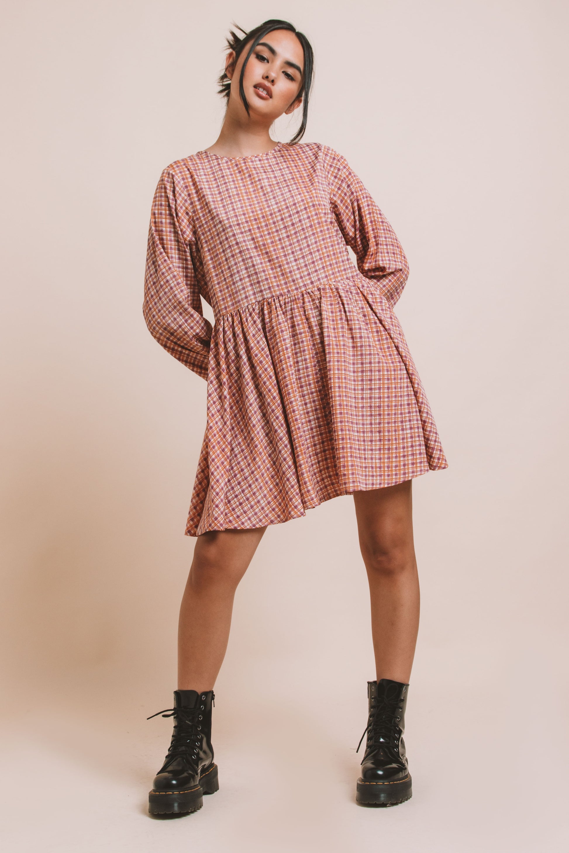 Daisy Street - Pink & Orange Check Print Smock Dress
