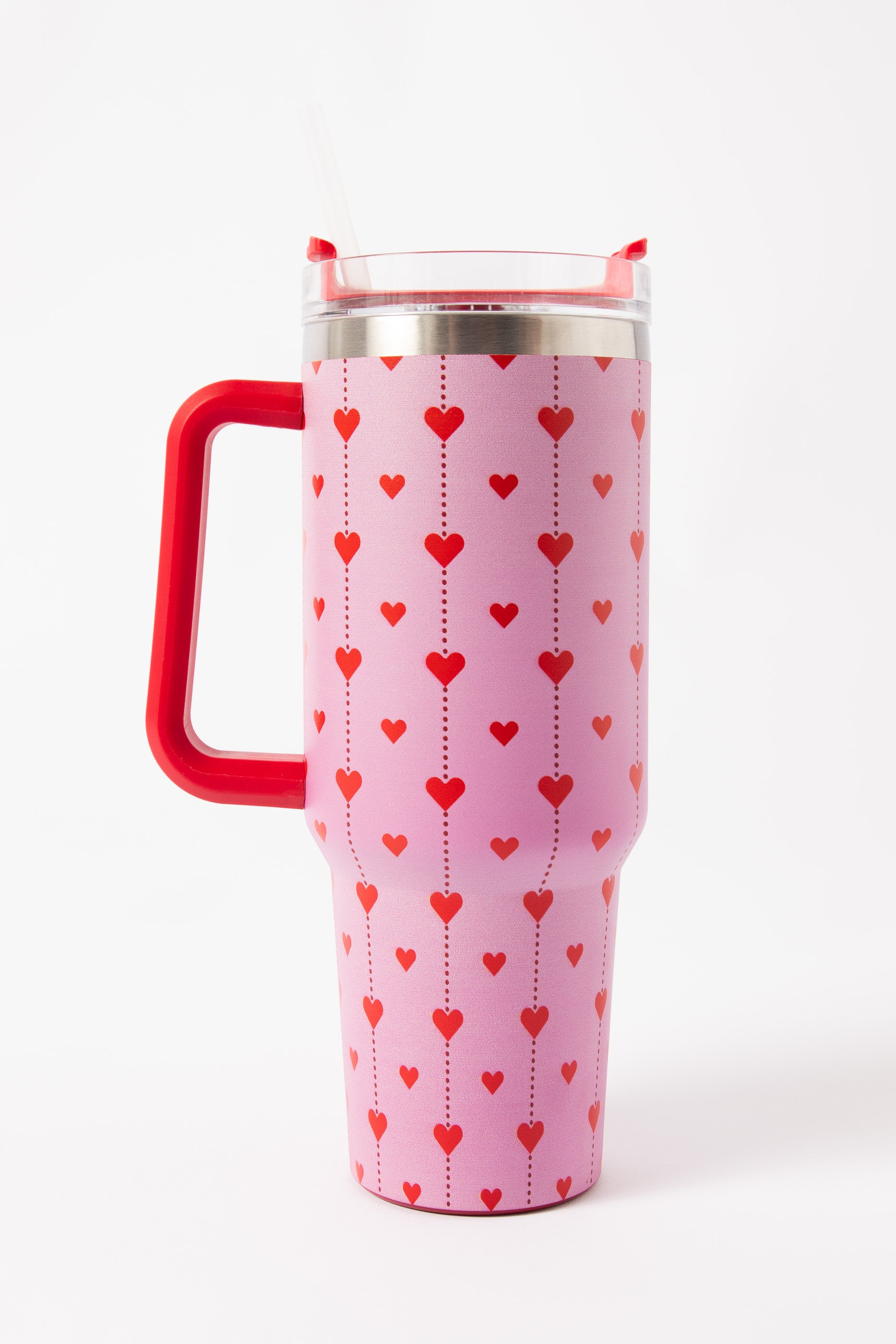 Pink & Red Heart Print Drinking Cup with Handle from Daisy Street