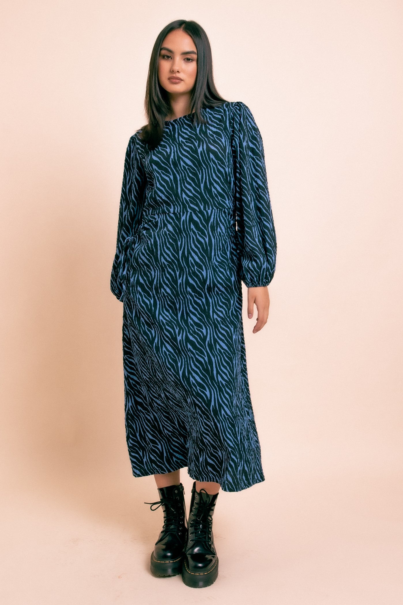 - Crinkle dress with blue zebra print