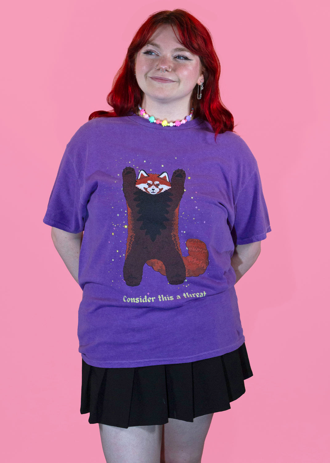 - Features a cute Red Panda design with the slogan 'Consider this a threat' in yellow text.