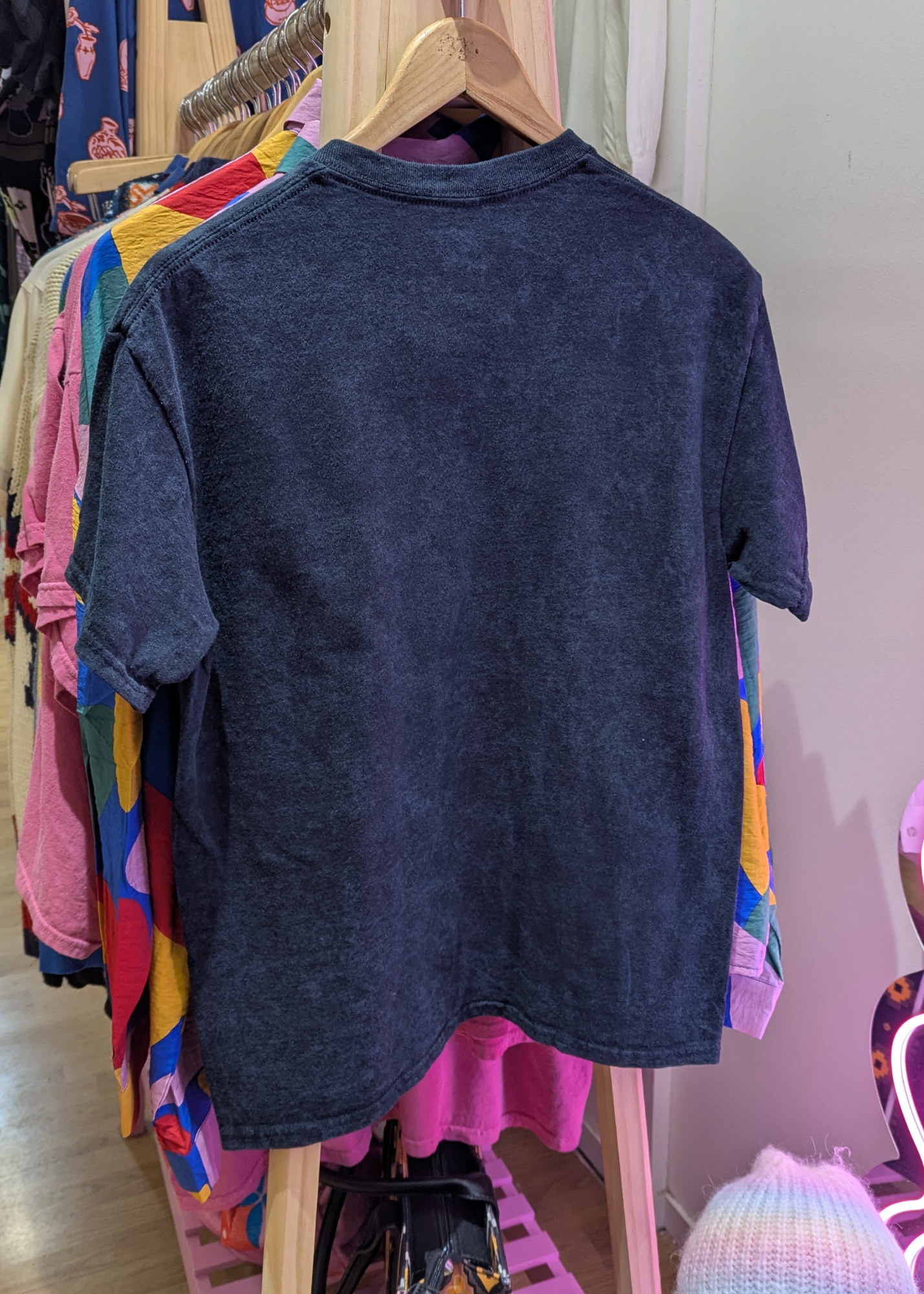 - These tees are made in small batches and each tee is hand dyed before the print is applied. This means the colour of the tees vary slightly between each batch produced and can differ between the shades pictured.