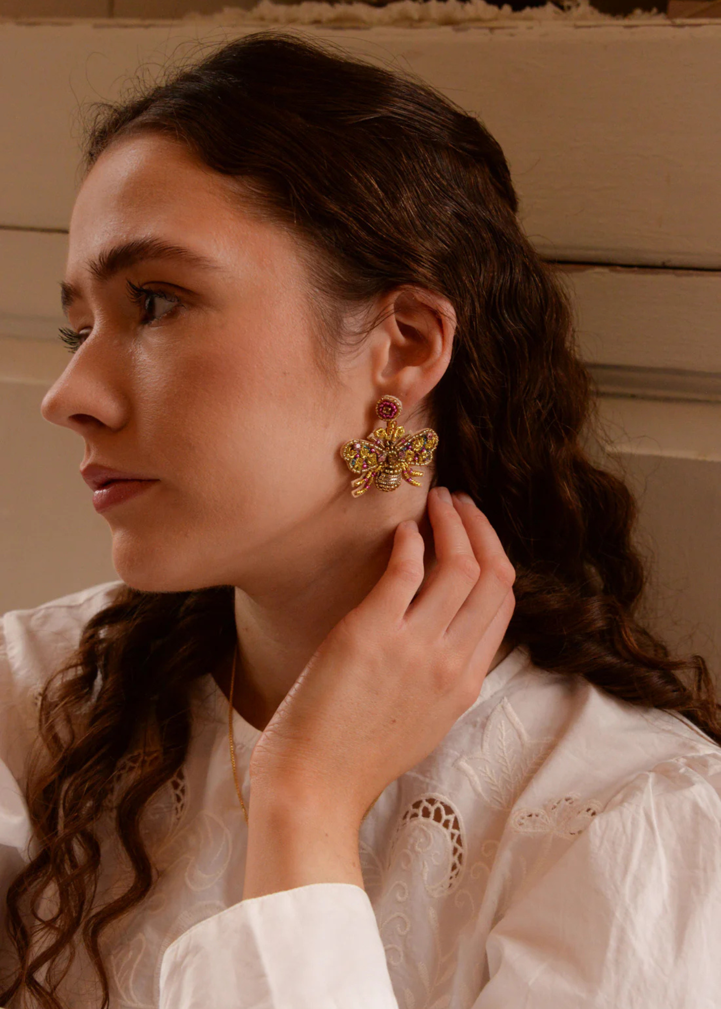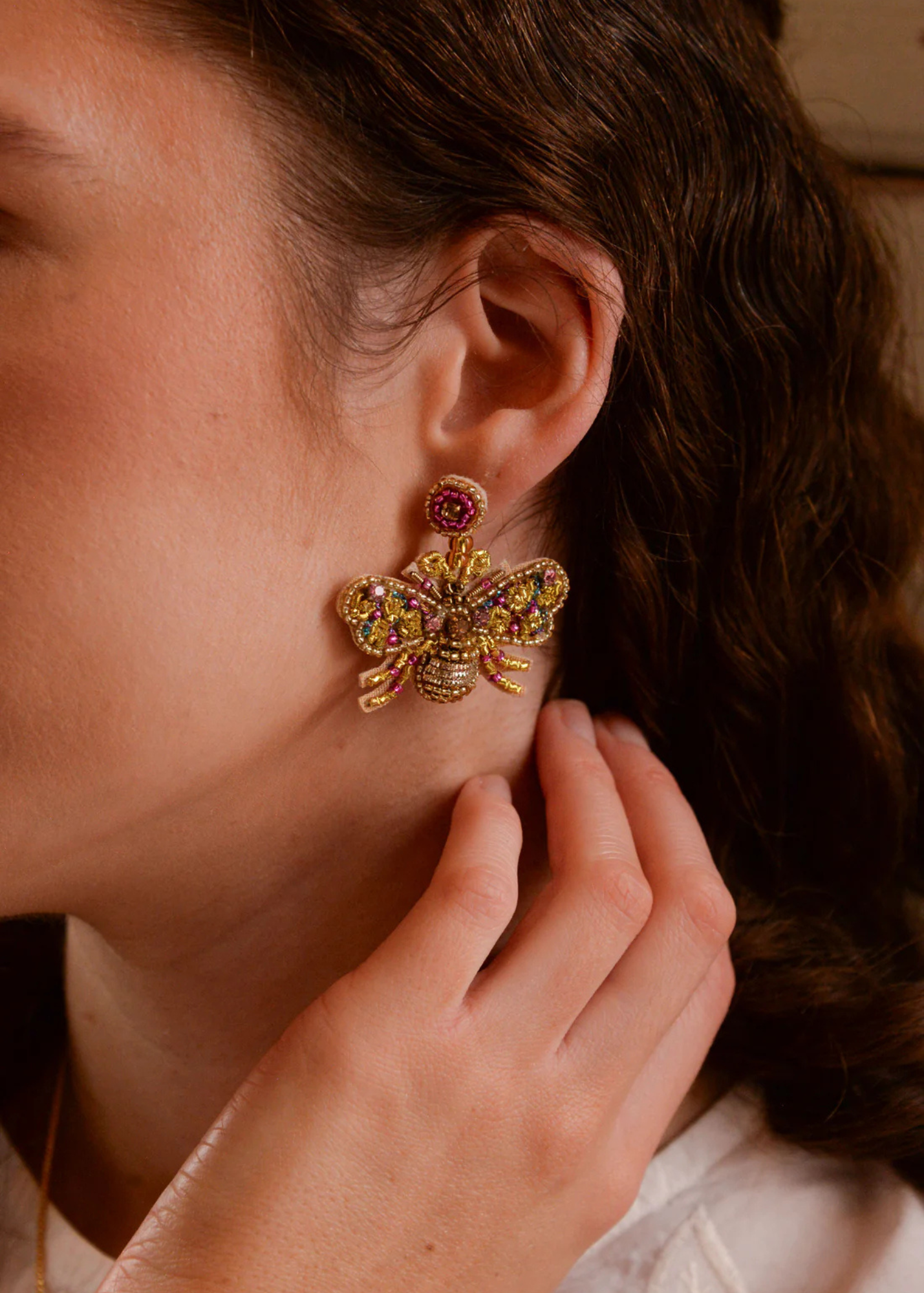 My Doris - Beaded Bee Earrings in Gold and Pink