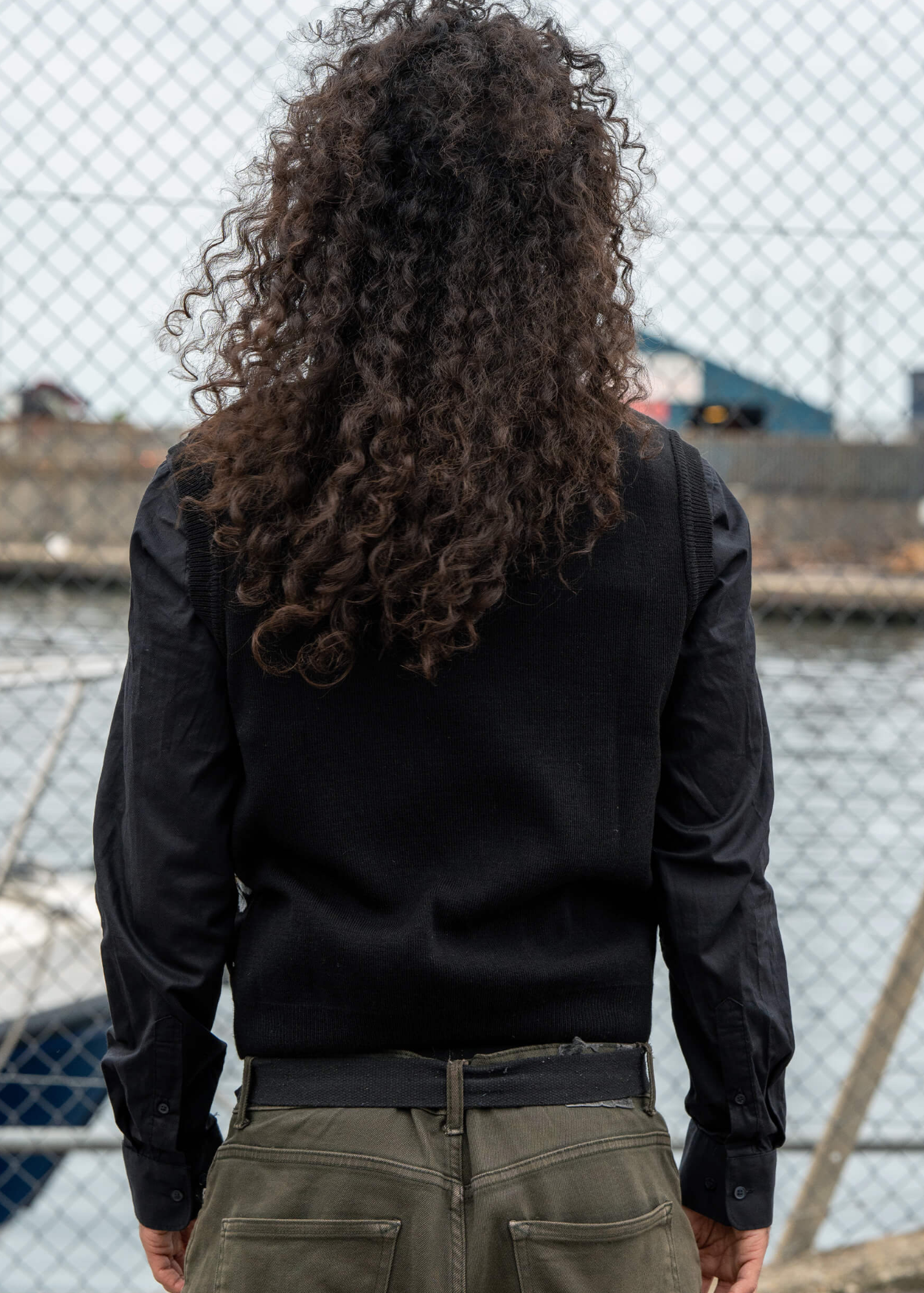 Run & Fly - Black Daisy V-Neck Knitted Tank Top Vest