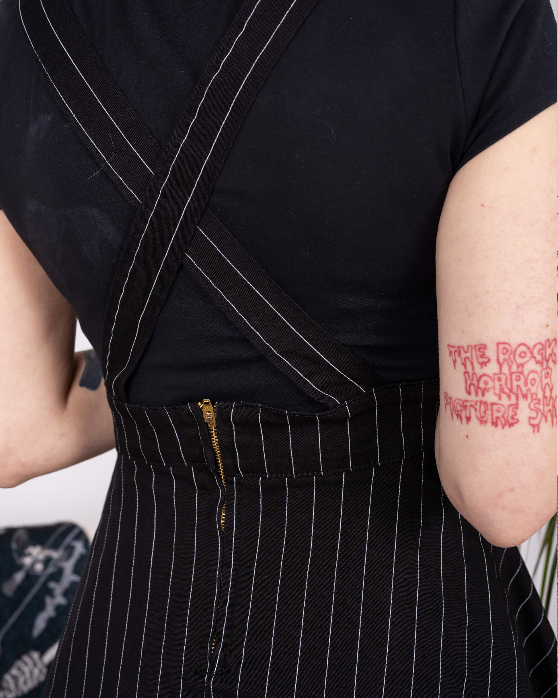 Run & Fly - Black & White Pinstripe Flared Pinafore Dress
