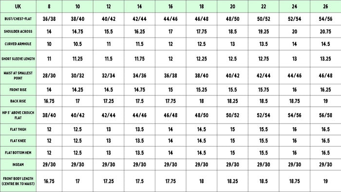 The measurements below are based on size gradings for this particular style of product - these measurements are NOT item specific.