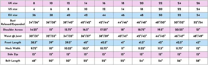 The measurements below are based on size gradings for this particular style of product - these measurements are NOT item specific.