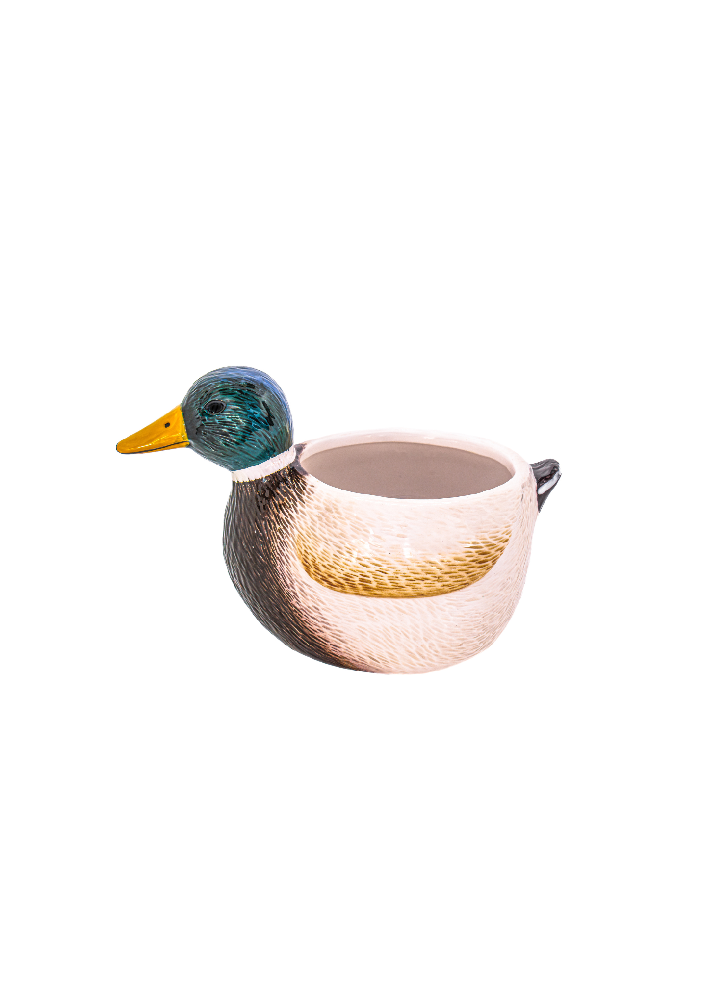- Glazed in cream, brown, green and yellow with etched feather detailing