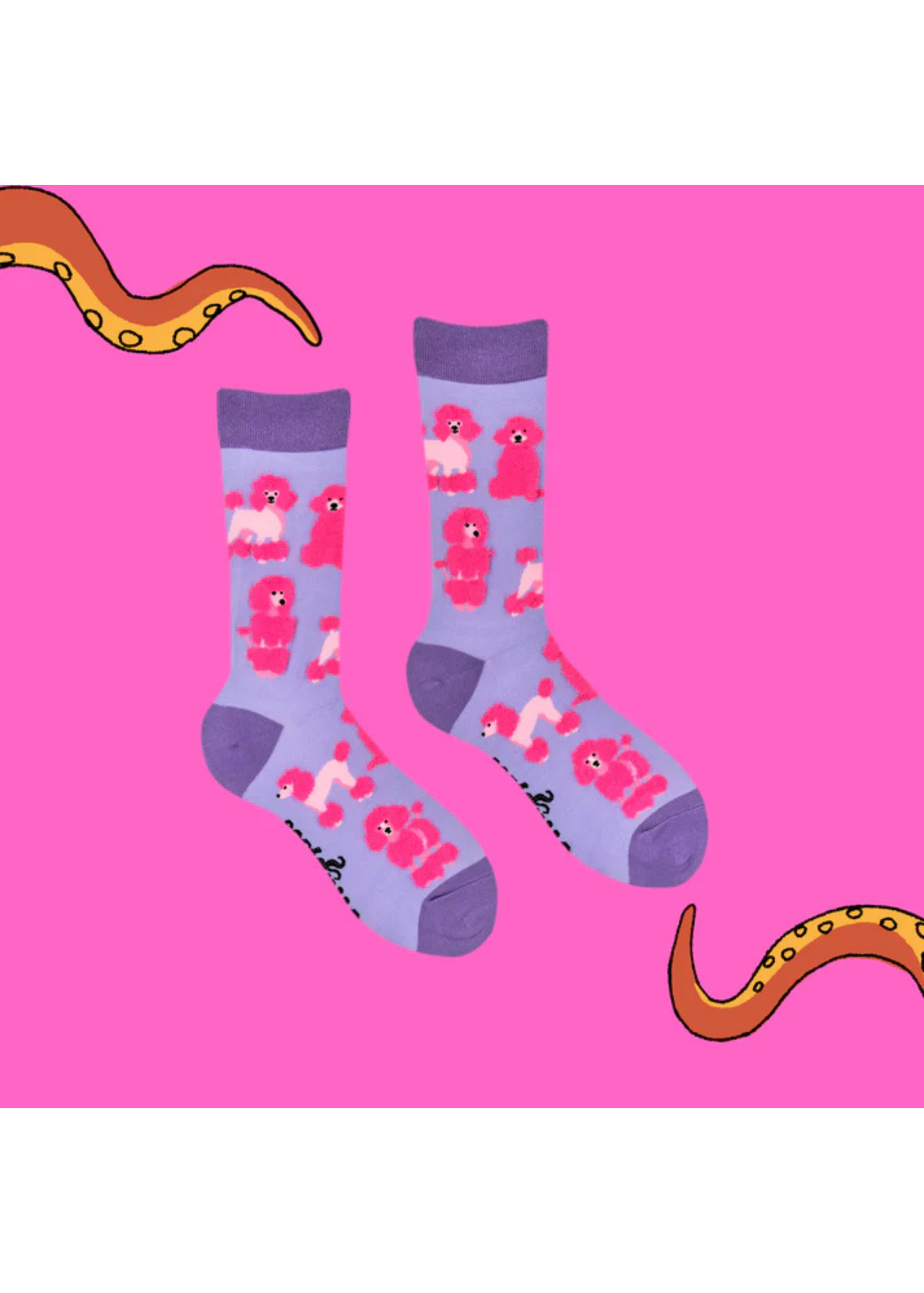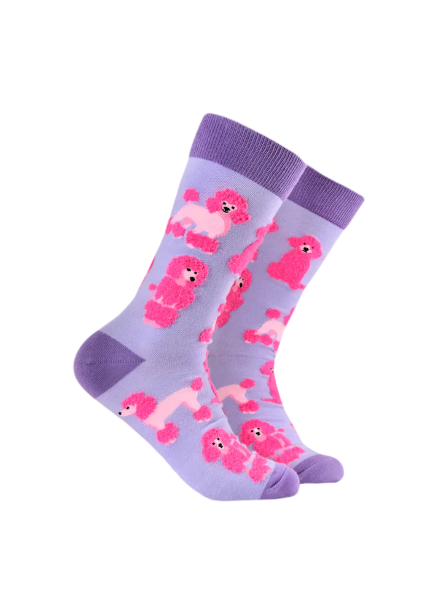 - Features a repeating textured pink poodle pattern on a vibrant purple background!