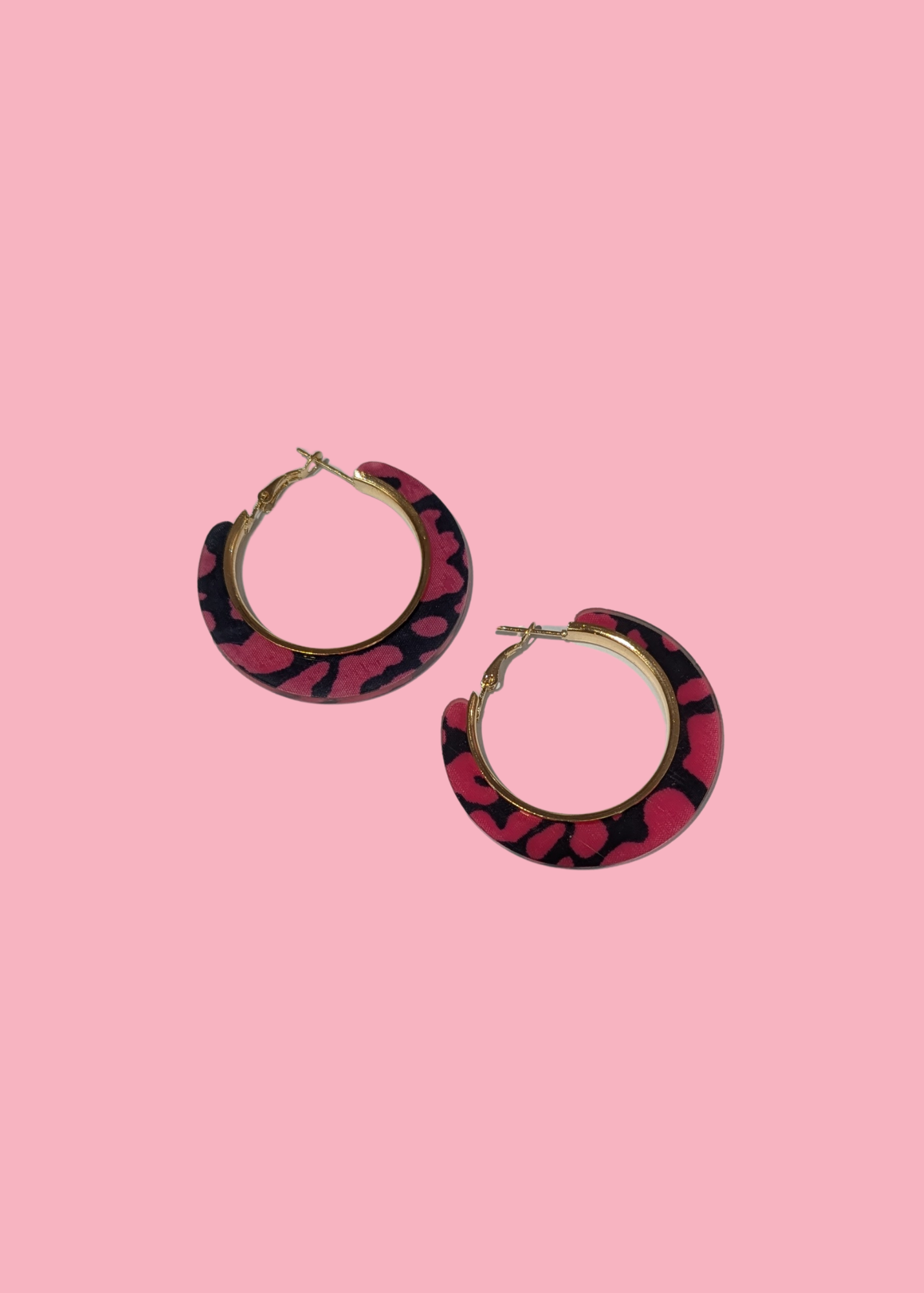 The Edit - Black & Pink Cow Print Acrylic Hoop Earrings