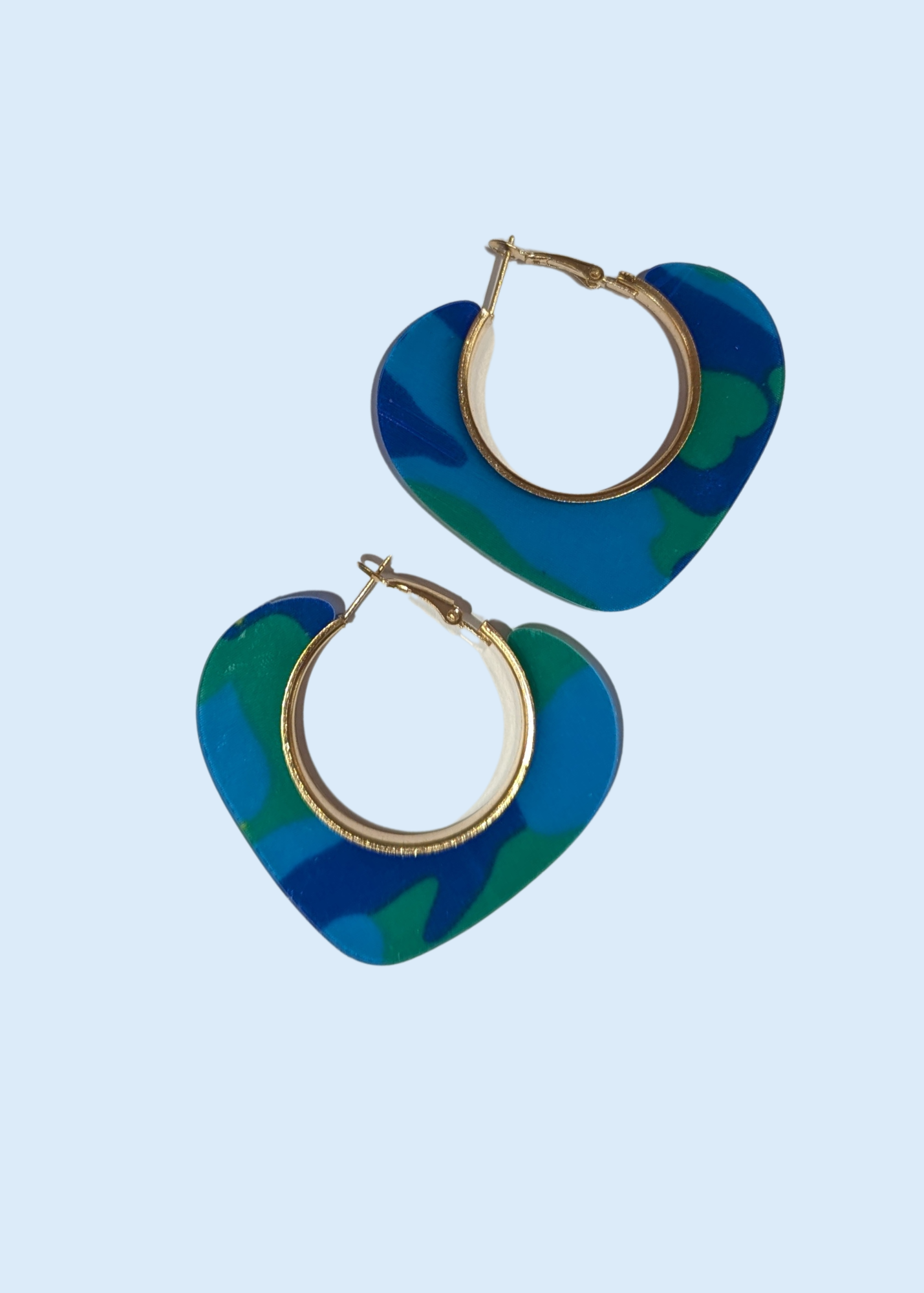 Blue & Green Heart Acrylic Hoop Earrings by the Thunder Egg team for The EDIT