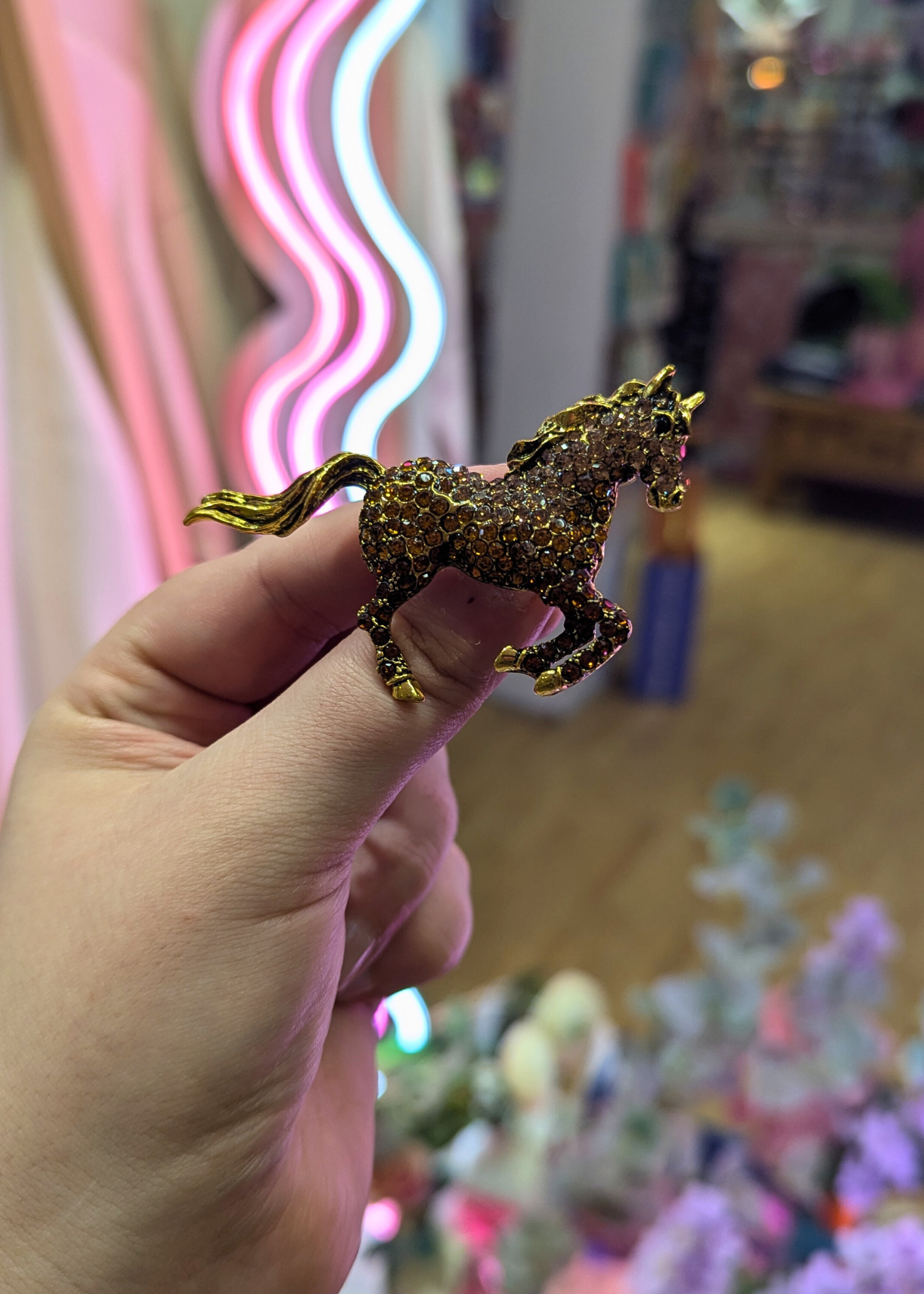 Brown Bejeweled Horse Brooch, hand-picked by the Thunder Egg team for The EDIT