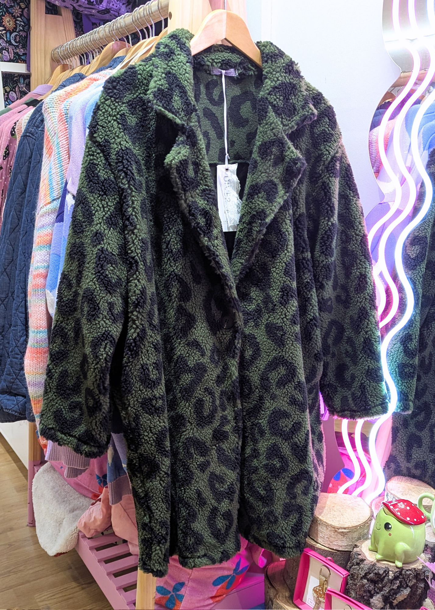 Khaki Green Leopard Print Teddy Fleece Jacket - Hand-picked by the Thunder Egg team for The EDIT